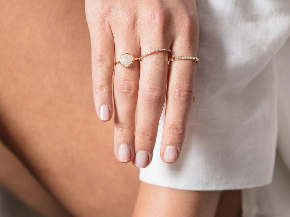 Wider bands (compared to a dainty stacker band) have less “give” for slipping over your knuckle, so you may need to increase the ring size. Consider ordering a half size larger than you usually would for bands 2mm or thicker.