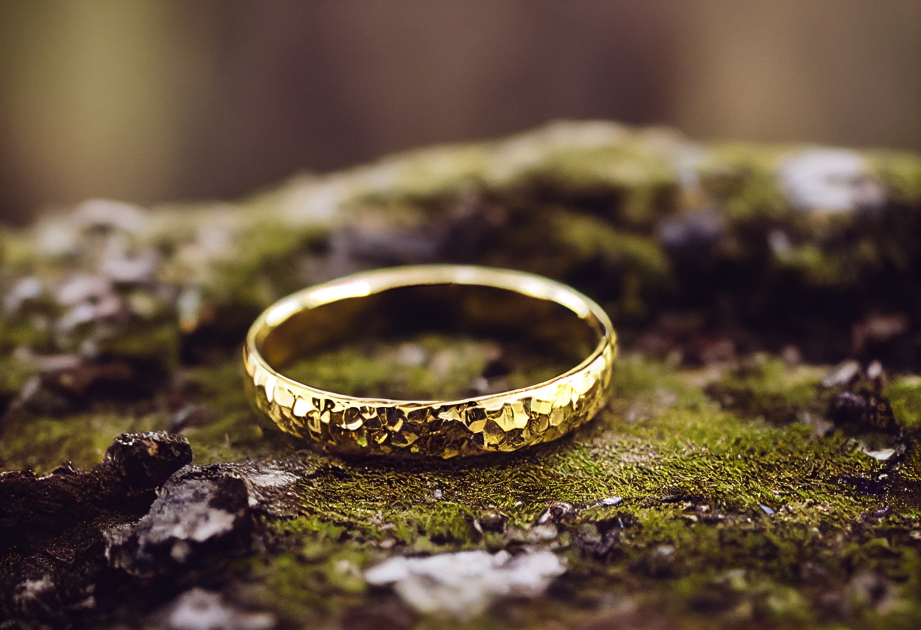 • Unique Hammered Design: Each ring is hand-hammered, creating a distinctive pattern that mirrors the depth and complexity of your bond.